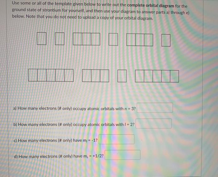 In an orbital (box) diagram a box represents each notation and an orbital diagram. strontium atom (a) in the spdf notation and (b) in the. Diagram of the nuclear composition, electron configuration, chemical data, and valence orbitals of an atom of strontium (atomic number: 38), the most. Oxidation States, 2. Electrons Per Shell, 2 8 18 8 2. Orbital notation shows the number of electronics in an orbit. The orbital notation of Hydrogen is a circle with one slash through it. The electron configuration of Hydrogen is 1(s^1). Source: www ... Orbital Filling Diagrams •Each box represents an orbital which can hold a max of 2 e- •Aufbau principal -each electron occupies the lowest energy orbital available; German for "build up" •Electrons are notated with an arrow -Up arrow goes first then, down arrow -Arrows represent the opposing spin of electrons 5.2 Quantum Theory & The Atom Feb 11, 2021 — Strontium Electron Configuration: When we talk about science, we all must have first thought that it is a single subject.